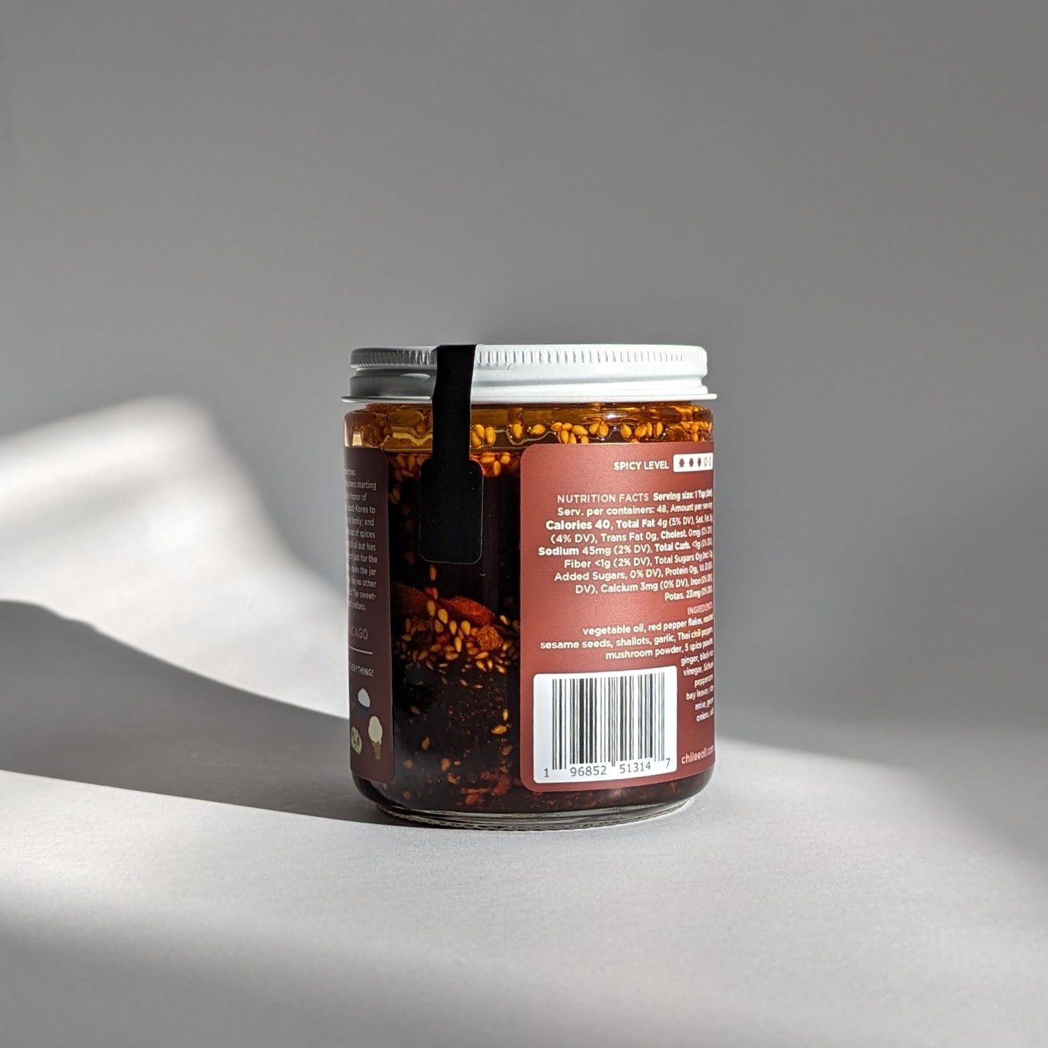 Elevate your favorite dishes with a generous dash of this chili oil. Experience the same sweetness, smokiness, and crunchiness of our Mild, plus a delicious dose of heat!